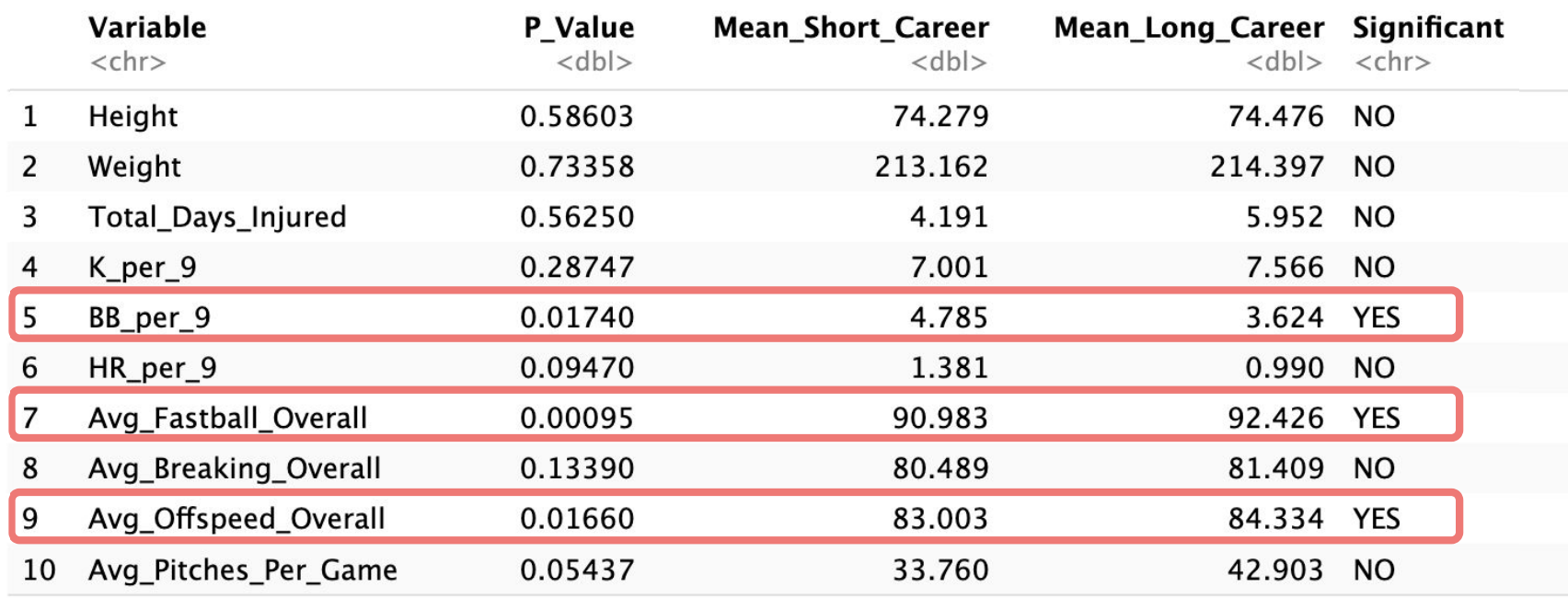 Real-life dataset exploration and analysis that provided rich insights into how to best maintain and develop MLB pitchers
